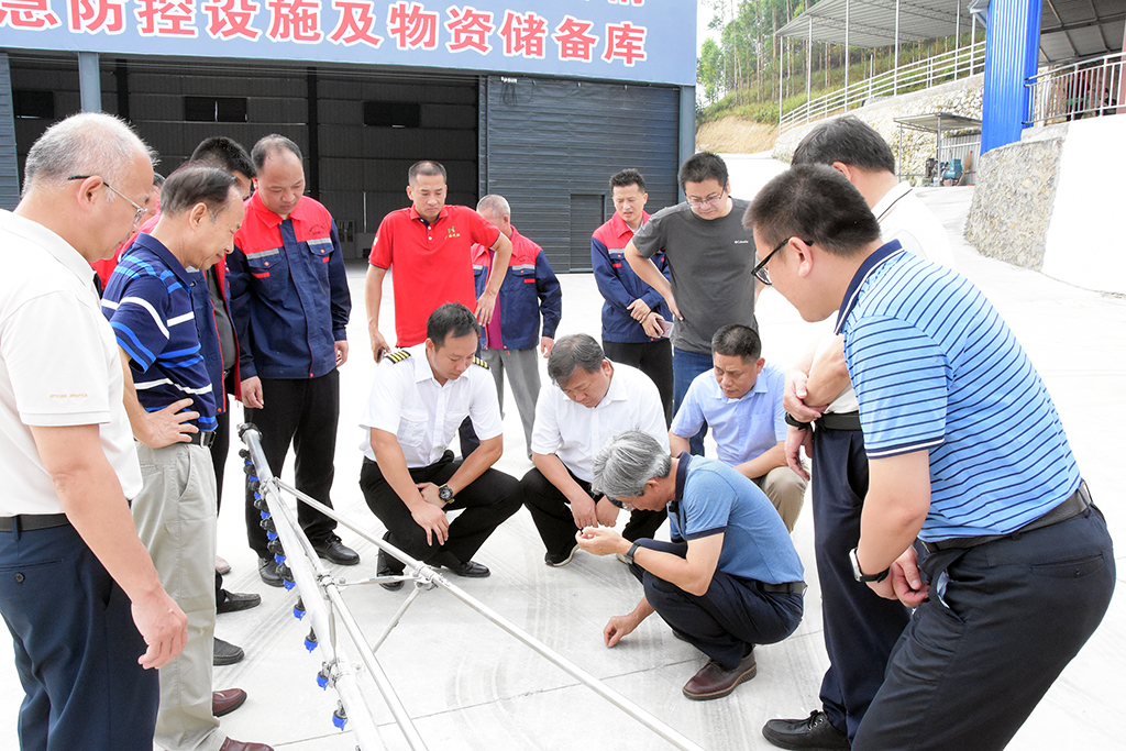 調(diào)研組一行實(shí)地察看國家(廣西科虹)重大病蟲疫情區(qū)域應(yīng)急防控設(shè)施及物資儲(chǔ)備庫,認(rèn)真聽取項(xiàng)目全面工作匯報(bào),查看了直升機(jī)、無人機(jī)等設(shè)備,并召開調(diào)研座談會(huì)。
