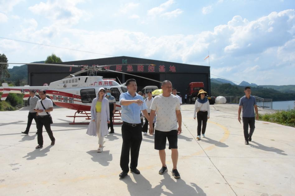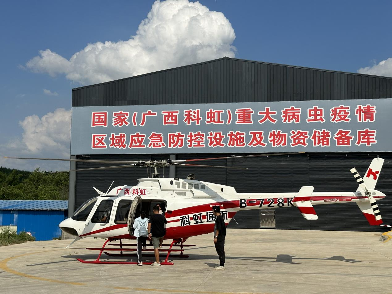調(diào)研組一行實(shí)地參觀了廣西重大病蟲疫情區(qū)域應(yīng)急防控設(shè)施及物資儲(chǔ)備庫(kù)建設(shè)項(xiàng)目,認(rèn)真聽取了項(xiàng)目建設(shè)情況,了解科虹公司直升機(jī)、無(wú)人機(jī)等防控設(shè)備情況,現(xiàn)場(chǎng)試乘直升機(jī)。
