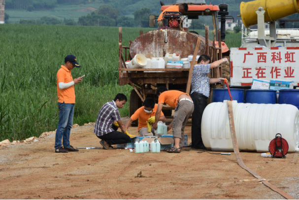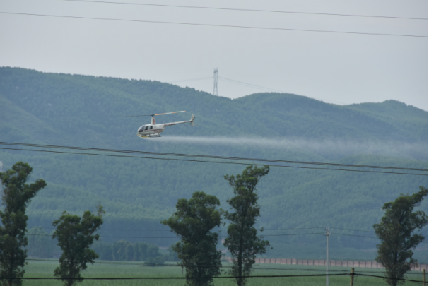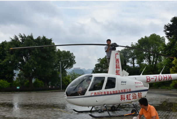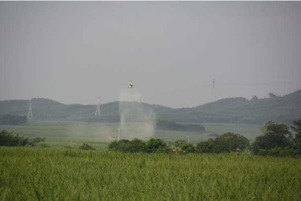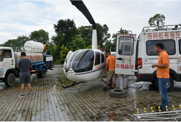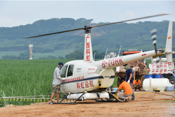 2017年6月23日,廣西科虹使用直升飛機(jī)進(jìn)行噴藥防治,完成3300畝防治目標(biāo)。此次飛防主要針對(duì)薊馬、粘蟲、棉蚜蟲和螟蟲四種害蟲,使用四種農(nóng)藥(阿維菌素、殺螟硫磷、高效氯氟氰菊酯和稻豐散)進(jìn)行聯(lián)合防治。