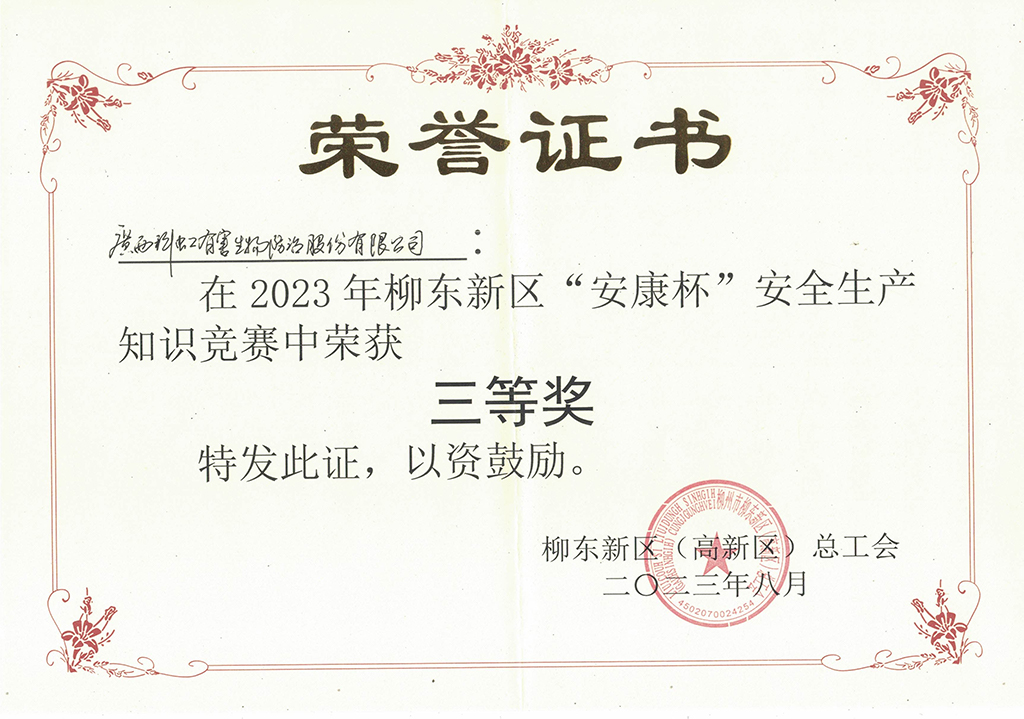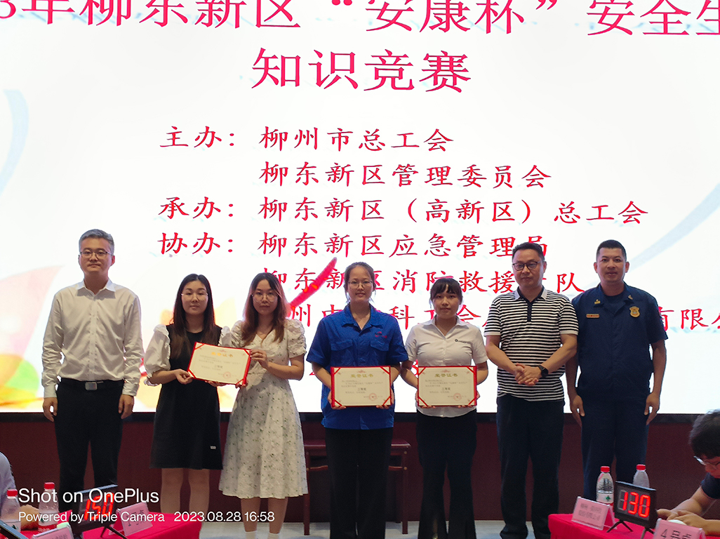 8月28日,柳州市柳東新區(qū)(高新區(qū))總工會(huì)組織轄區(qū)內(nèi)企業(yè)開展2023年“安康杯”安全生產(chǎn)知識(shí)競(jìng)賽活動(dòng),公司代表隊(duì)斬獲競(jìng)賽三等獎(jiǎng)。