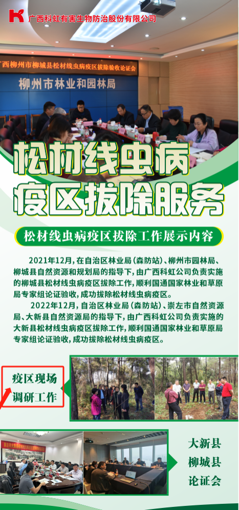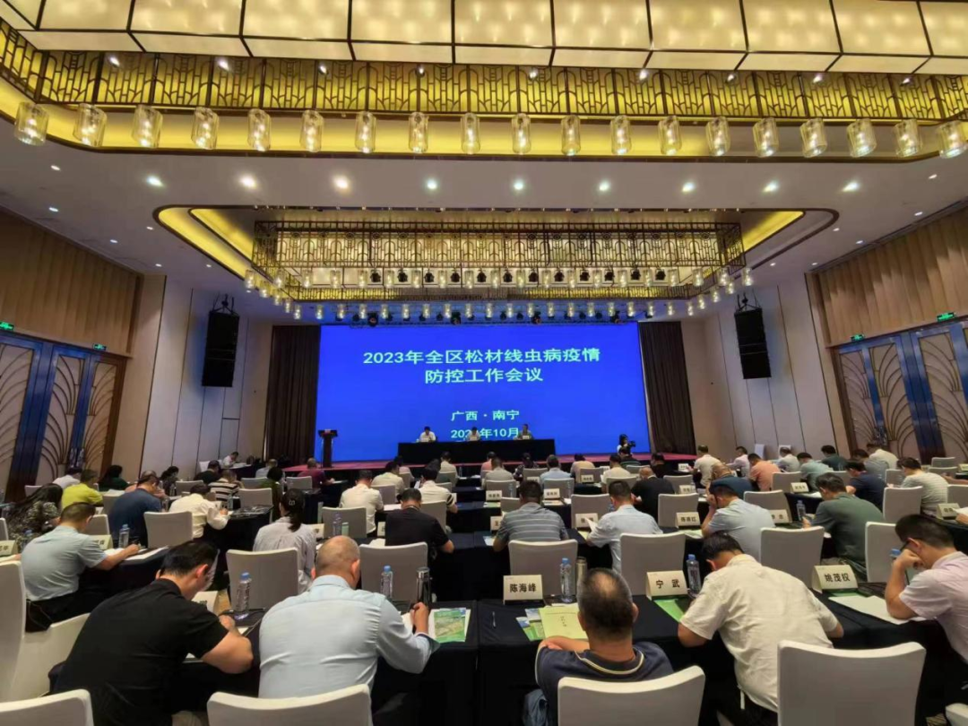 2023年10月24-26日,由自治區(qū)林業(yè)局組織的“全區(qū)松材線蟲(chóng)病疫情防控工作會(huì)議”在南寧隆重召開(kāi)。會(huì)議的主要內(nèi)容是通報(bào)“十四五”攻堅(jiān)行動(dòng)以來(lái)全區(qū)松材線蟲(chóng)病疫情防控工作,部署中期評(píng)估工作和下一階段防控重點(diǎn)。自治區(qū)林業(yè)局分管領(lǐng)導(dǎo)、生態(tài)處、防治檢疫站主要負(fù)責(zé)人、各市林業(yè)主管部門(mén)分管領(lǐng)導(dǎo)、防治檢疫機(jī)構(gòu)負(fù)責(zé)人等相關(guān)領(lǐng)導(dǎo)參加會(huì)議??坪绻臼苎鳛槲ㄒ坏钠髽I(yè)代表,由公司副總經(jīng)理袁平帶隊(duì)參加本次工作會(huì)議。