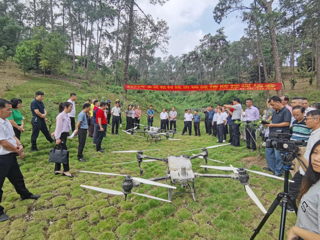 在全區(qū)松材線蟲(chóng)病疫情防控工作大會(huì)上,科虹公司技術(shù)人員現(xiàn)場(chǎng)展示了在松材線蟲(chóng)病綜合防控服務(wù)工作的具體措施:無(wú)人機(jī)航拍監(jiān)測(cè)松樹(shù)枯死木情況、疑似松材線蟲(chóng)病枯死木取樣、健康松木打孔注藥服務(wù)、無(wú)人機(jī)噴藥防治松材線蟲(chóng)病傳播媒介松褐天牛、松材線蟲(chóng)病疫區(qū)拔除工作等防控舉措。