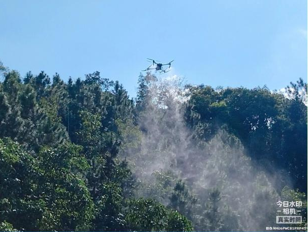 無(wú)人機(jī)實(shí)施噴藥防治松褐天牛服務(wù)現(xiàn)場(chǎng)