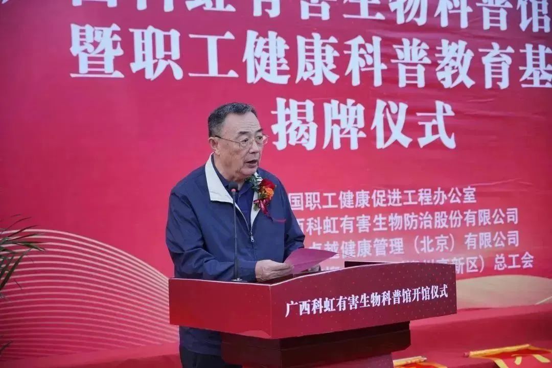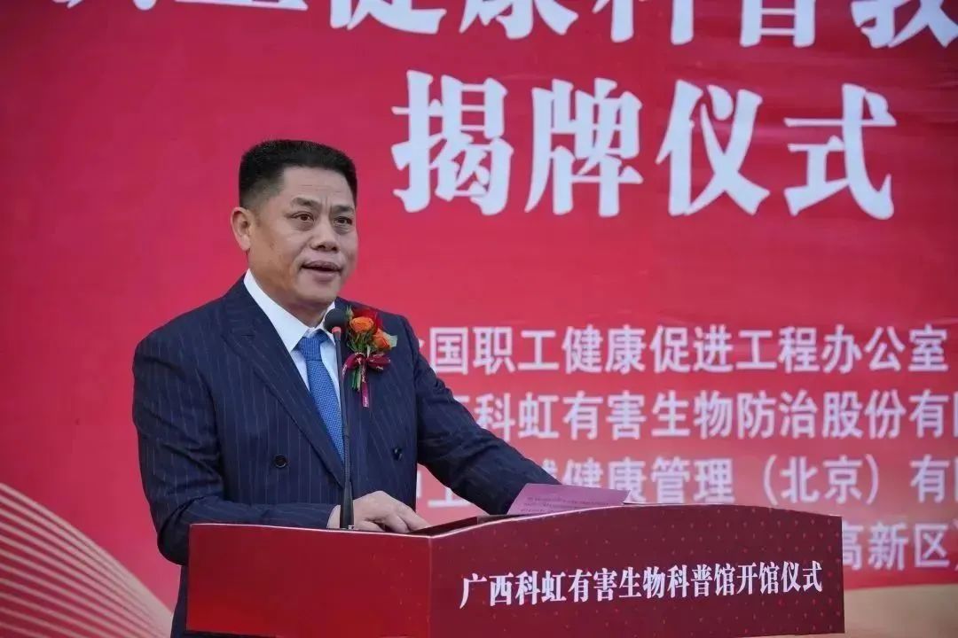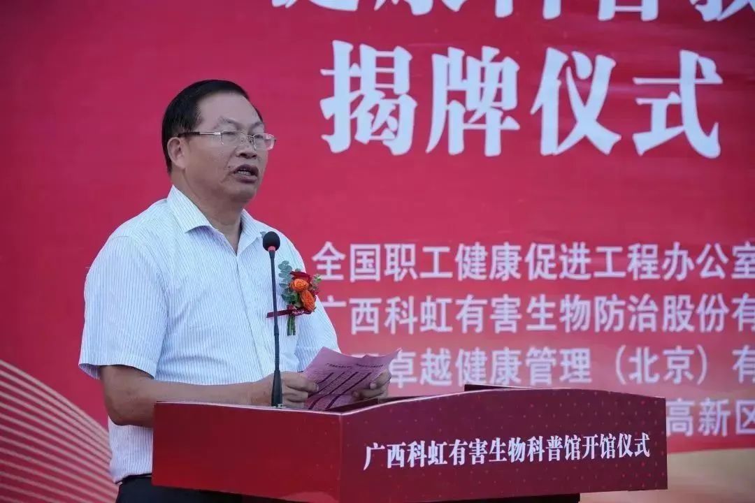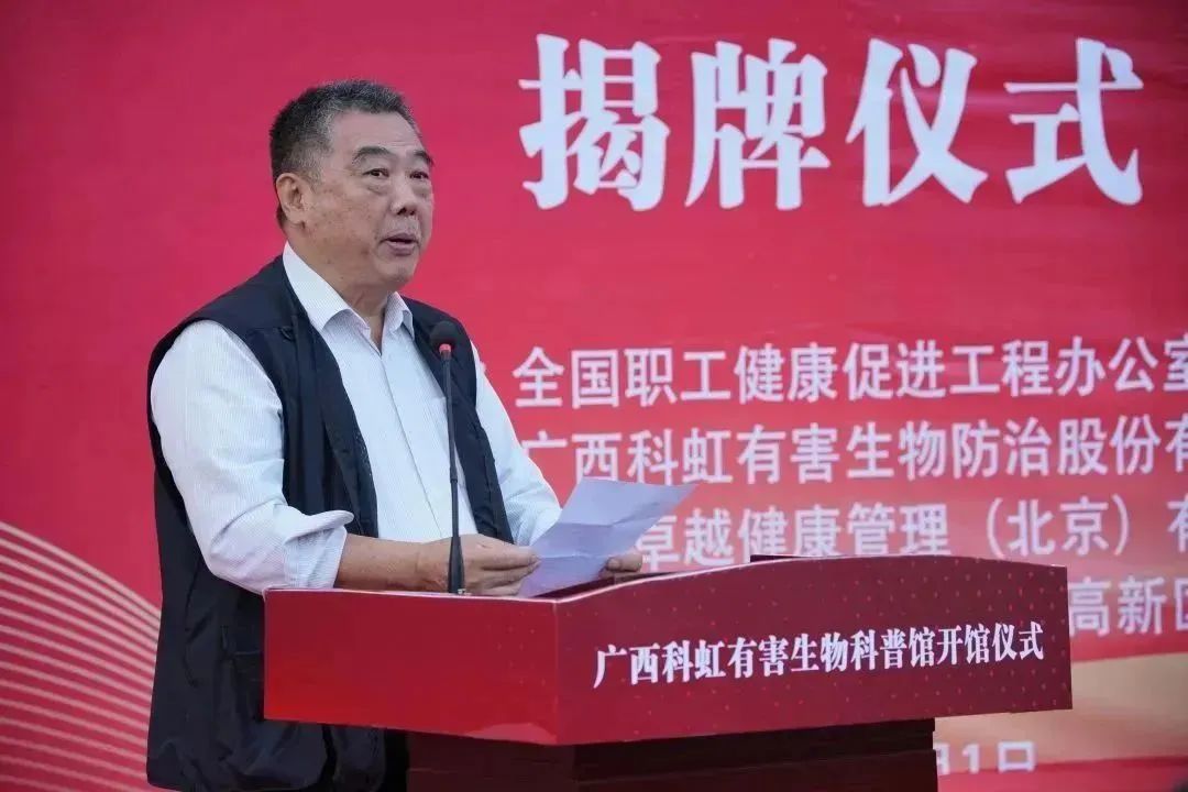 廣西預(yù)防醫(yī)學(xué)會會長、原自治區(qū)衛(wèi)健委副主任耿文奎在儀式上發(fā)表講話。他指出,普及科學(xué)知識是提高全民科學(xué)素質(zhì),全面實施科普興教、科技強(qiáng)國,推動科技進(jìn)步、產(chǎn)業(yè)創(chuàng)新、轉(zhuǎn)型發(fā)展的必然要求。希望科虹有害生物科普館順應(yīng)時代的發(fā)展,嚴(yán)格按照國家政策和人民的需求,提高公眾對有害生物關(guān)注和認(rèn)知度,保護(hù)我們生活的環(huán)境,保障人民的健康。