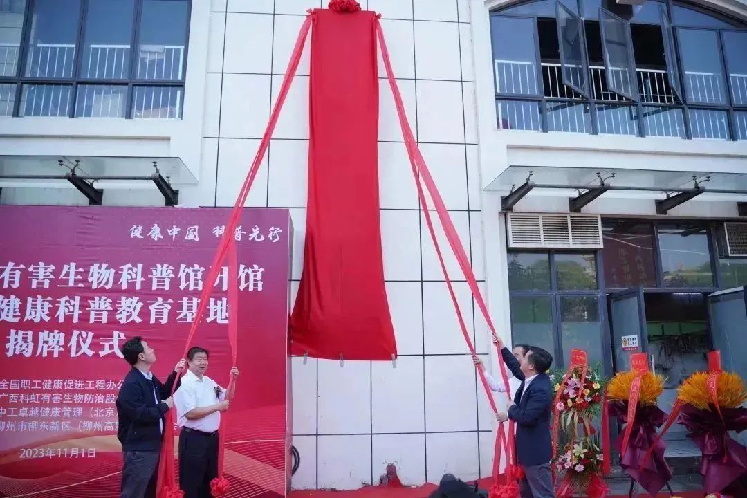 國務(wù)院發(fā)展研究中心社會發(fā)展研究部第二研究室主任、研究員馮文猛,農(nóng)業(yè)農(nóng)村部種植業(yè)管理司一級巡視員、原農(nóng)業(yè)農(nóng)村部種植業(yè)管理司副司長陳友權(quán),柳州市人民政府黨組成員、副秘書長李二超,柳州市柳東新區(qū)黨工委副書記、管委會主任劉度量為科虹有害生物科普館開館揭牌。