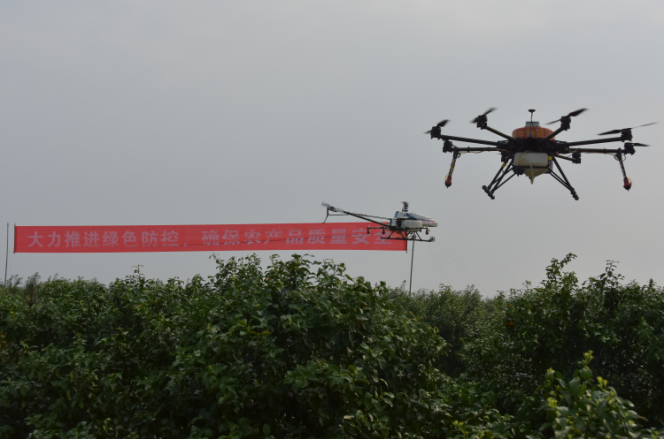 圖三、科虹公司的無人機(jī)在現(xiàn)場做噴藥展示。