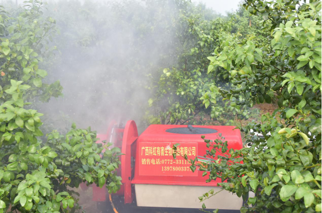 圖四、科虹的新式大型自走式噴藥機(jī)在現(xiàn)場做噴藥展示。
