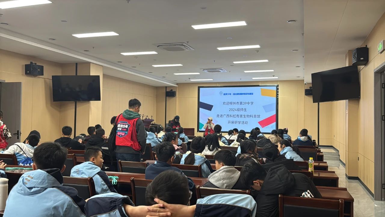 12月15日上午,由柳州國旅研學(xué)部?追夢少年工作室?guī)ш?,柳州市第三十九中學(xué)2024級師生來到科虹有害生物科普館,開展“綜合素質(zhì)教育系列課程”研學(xué)。