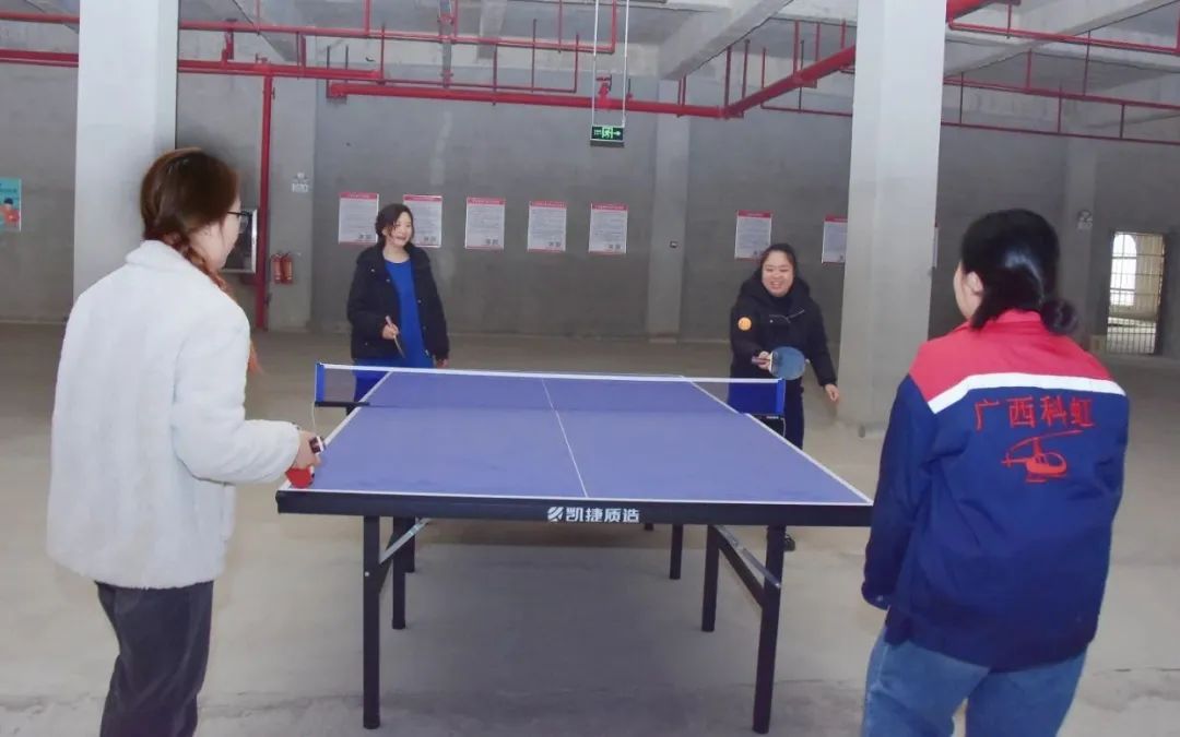 活動(dòng)中,員工們踴躍參與打乒乓球、羽毛球等運(yùn)動(dòng)小比賽,現(xiàn)場(chǎng)氣氛熱烈,笑聲不斷。