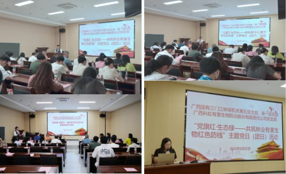 為深入學(xué)習(xí)貫徹習(xí)近平新時代中國特色社會主義思想,引導(dǎo)黨員干部、青年團(tuán)員堅(jiān)定理想信念,強(qiáng)化黨性修養(yǎng)與使命擔(dān)當(dāng),5月22日,廣西科虹有害生物防治股份有限公司黨支部與三門江林場機(jī)關(guān)第五黨支部、第一團(tuán)支部聯(lián)合開展 “黨旗紅?生態(tài)綠 —— 共筑林業(yè)有害生物紅色防線” 主題黨日(團(tuán)日)活動。30多位黨團(tuán)員同志齊聚科虹公司,通過理論學(xué)習(xí)、文化傳承、實(shí)地觀摩等環(huán)節(jié),推動黨建與生態(tài)保護(hù)深度融合。