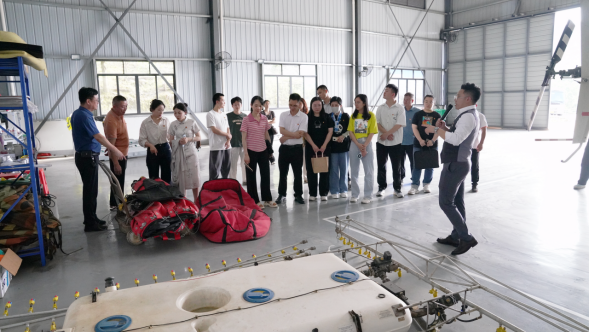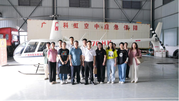 接著,大家參觀科虹有害生物科普館與國家(廣西科虹)重大病蟲疫情區(qū)域應(yīng)急防控設(shè)施及物資儲備庫,在參觀過程中公司領(lǐng)導(dǎo)全程陪同??破震^內(nèi),通過圖文展板、實(shí)物標(biāo)本及VR 互動設(shè)備,直觀了解桉樹松樹等林業(yè)有病蟲害發(fā)生、對林木的危害與防治技術(shù),感受科虹公司在生態(tài)保護(hù)領(lǐng)域的技術(shù)成果。在物資儲備庫,韋寧副總經(jīng)理現(xiàn)場講解植保無人機(jī)、直升機(jī)的作業(yè)原理與應(yīng)用場景。科虹公司自主研發(fā)的無人機(jī)精準(zhǔn)施藥技術(shù)、直升機(jī)應(yīng)急防控體系引發(fā)熱烈討論,雙方就 “黨建 + 科技” 賦能林業(yè)有害生物防治展開深入交流,探討建立 “資源共享、技術(shù)互補(bǔ)、協(xié)同防控” 的合作機(jī)制。