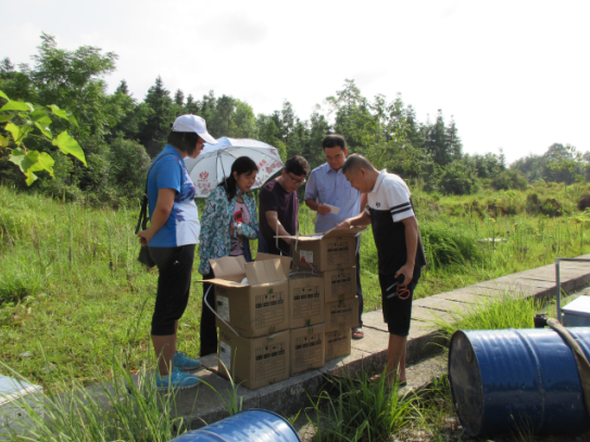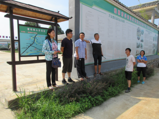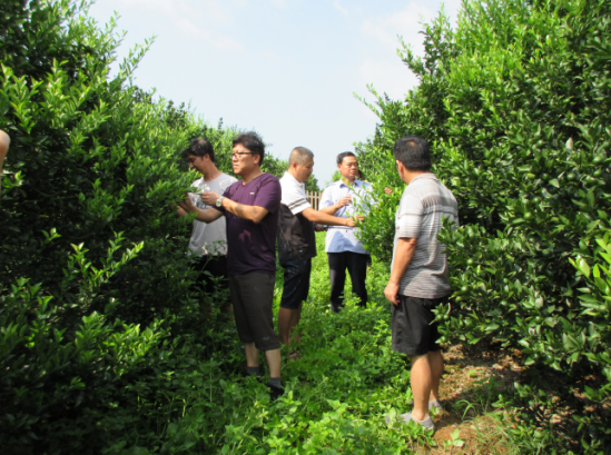 (圖二:桂林市植保站、興安縣植保站專家領導在果園現場指導飛防藥效工作)