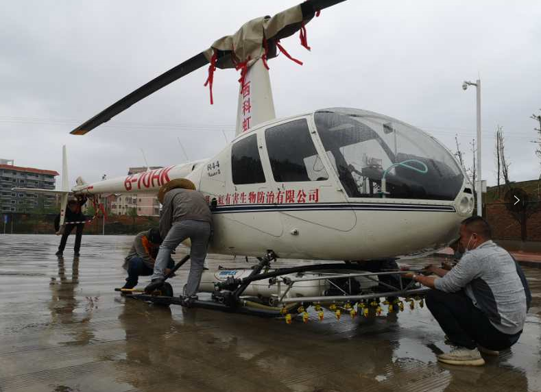 廣西科虹公司具有豐富的農(nóng)林病蟲(chóng)害防治經(jīng)驗(yàn)和先進(jìn)的防治設(shè)備。現(xiàn)擁有的美國(guó)羅賓遜公司R44型直升機(jī),可實(shí)施航空噴灑農(nóng)藥進(jìn)行飛防作業(yè)。