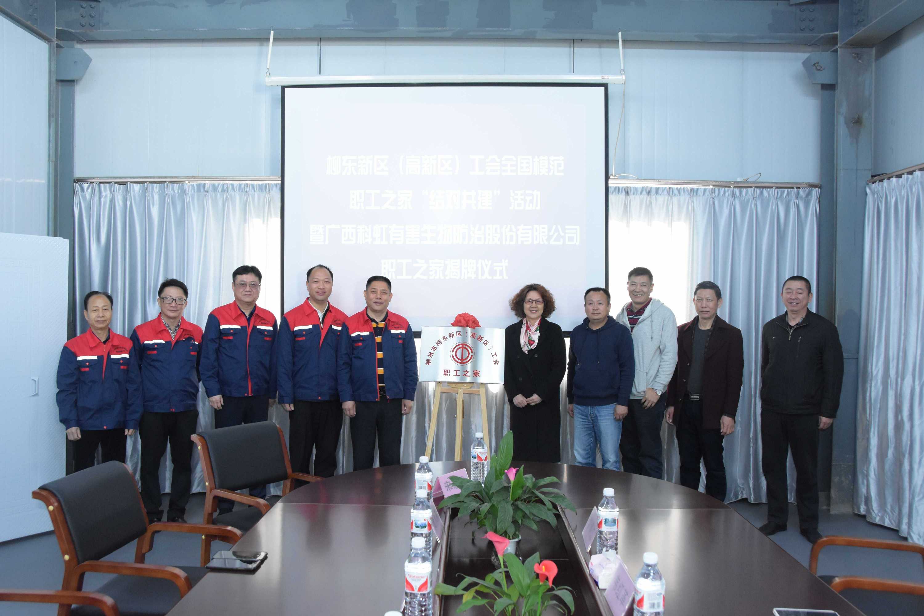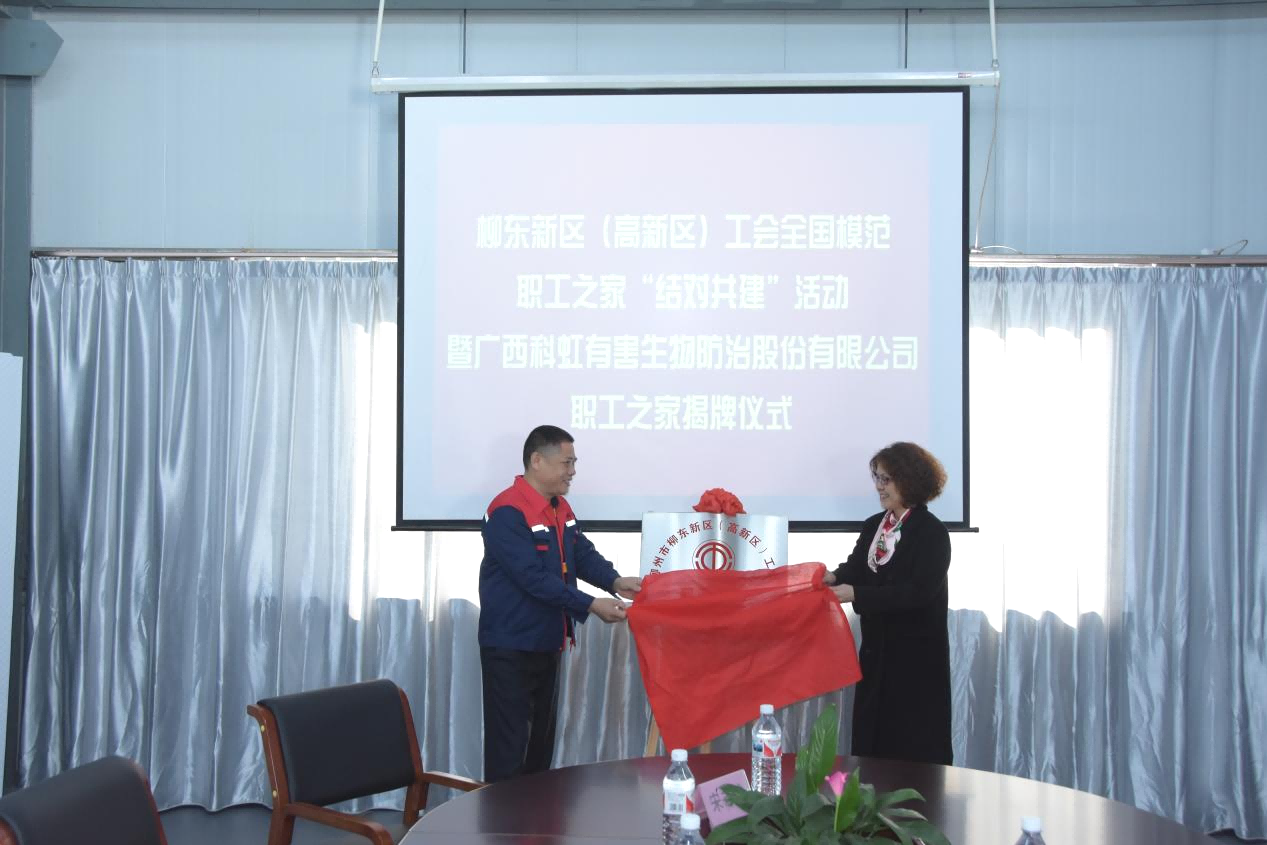 12月1日上午,柳州市總工會(huì)黨組成員、副主席韋紅革一行與廣西柳州市柳東新區(qū)(高新區(qū))工會(huì)相關(guān)領(lǐng)導(dǎo)一同前往廣西科虹有害生物防治股份有限公司開(kāi)展模范職工之家“結(jié)對(duì)共建”活動(dòng)?;顒?dòng)現(xiàn)場(chǎng)還舉行了廣西科虹有害生物防治股份有限公司工會(huì)職工之家的揭牌儀式。科虹公司總經(jīng)理肖志科、工會(huì)主席楊自華等領(lǐng)導(dǎo)出席活動(dòng)。