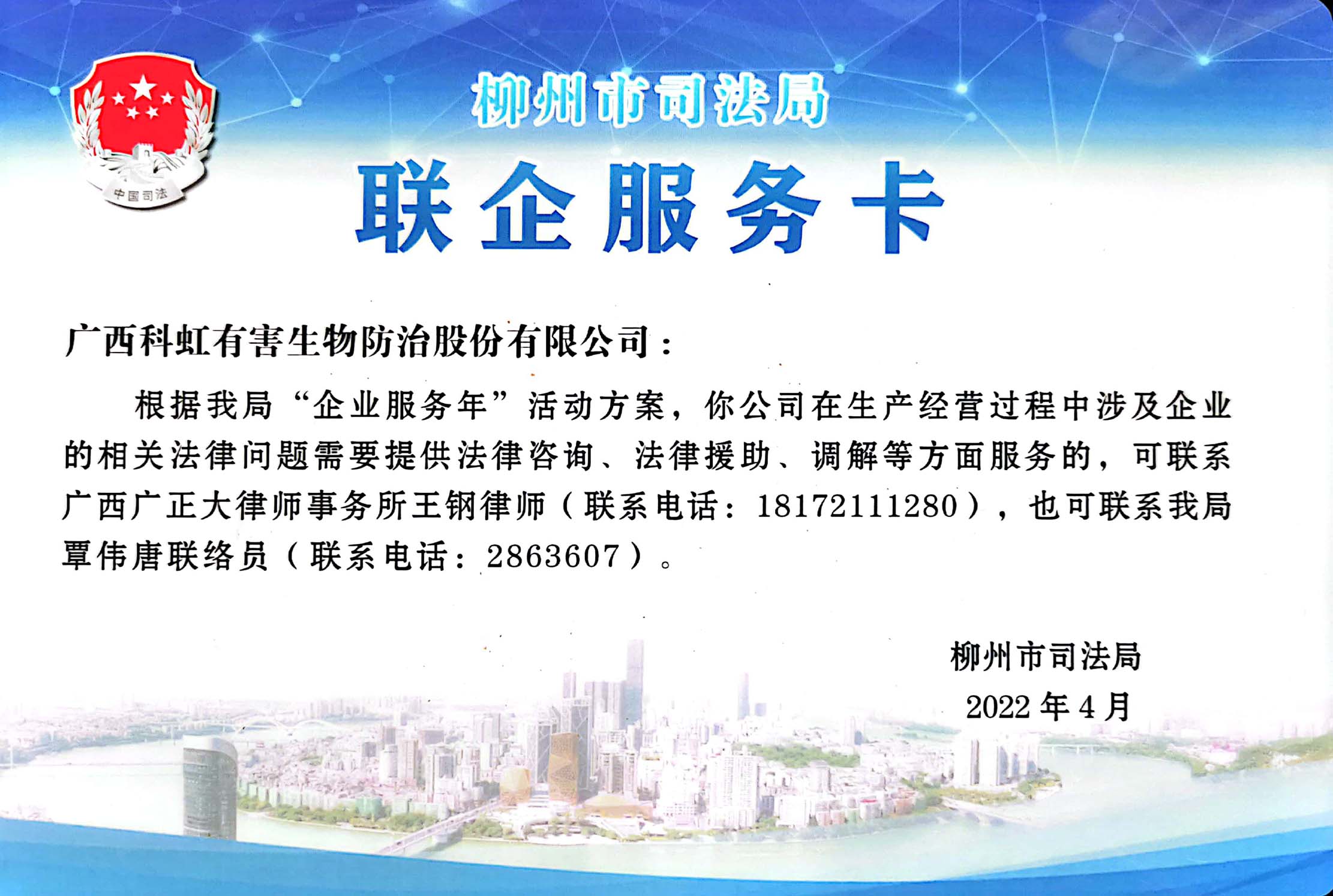 ▲司法局授予科虹公司的聯(lián)企服務卡